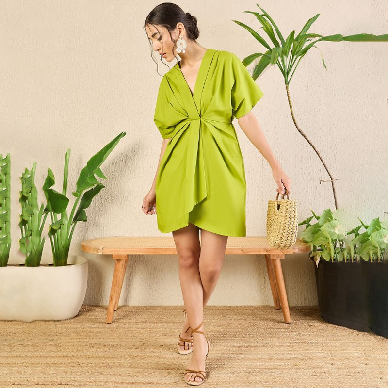 Pink Abstract Printed Shirt Collar Cuffed Sleeves Satin Wrap Dress