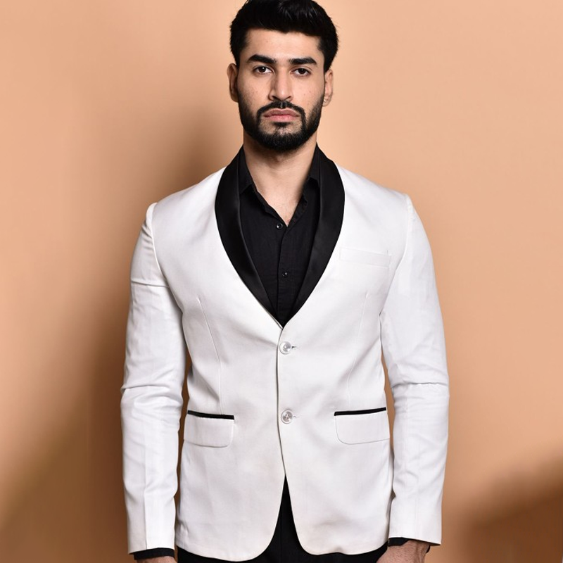Men Black Floral Patterned Single-Breasted Slim Fit Tuxedo